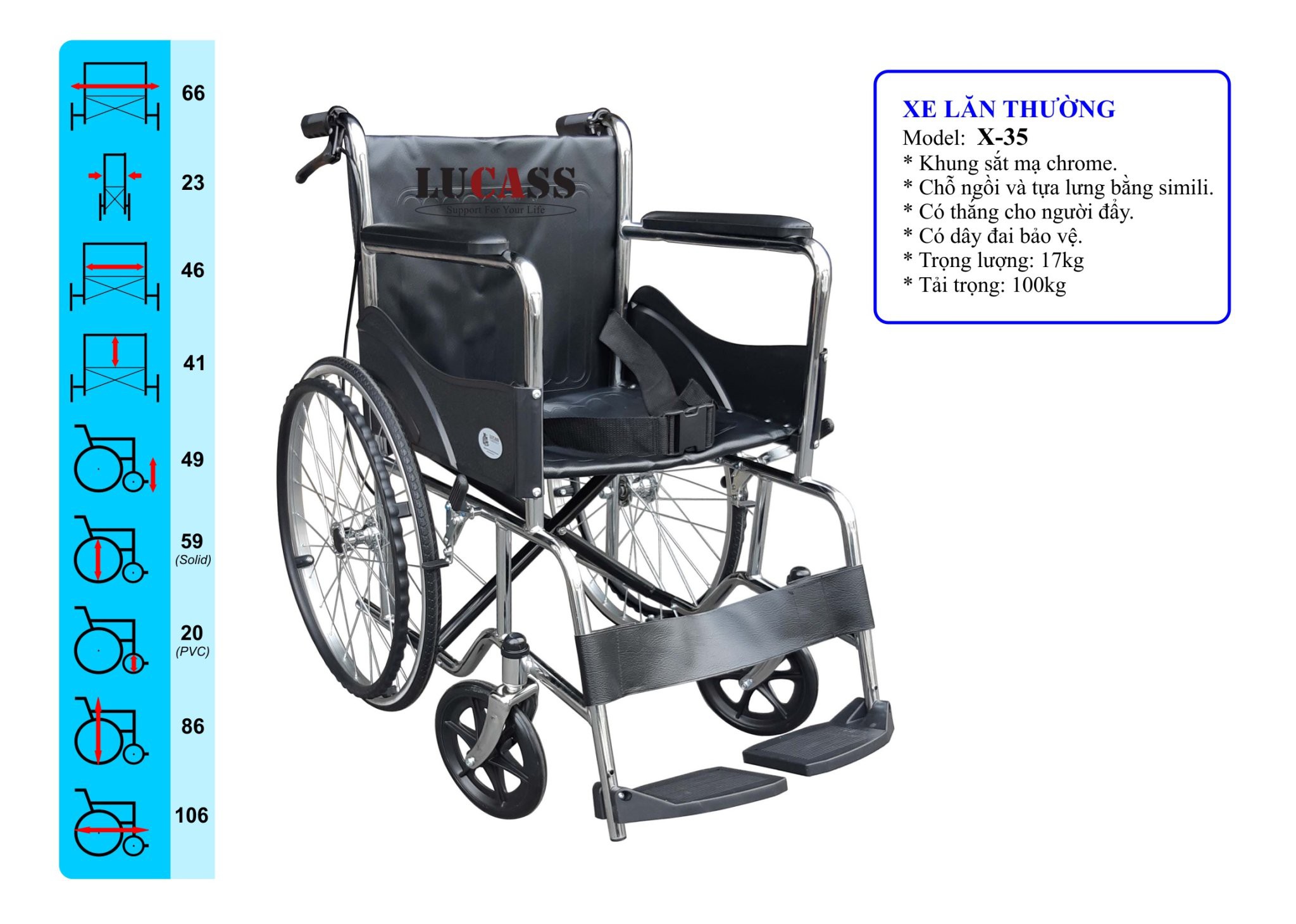 Xe lăn bánh căm Lucass X-35 (thắng tay, gác chân nhựa)